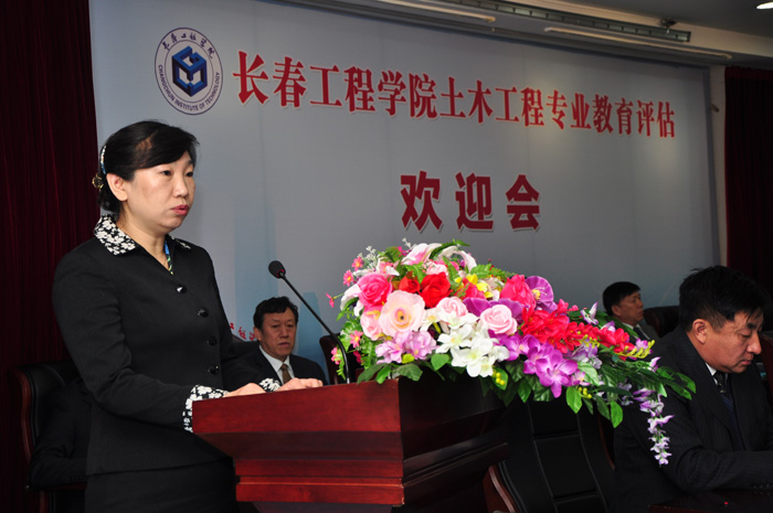 吉林省住建厅刘萍副厅长在会上讲话。她说,马博手机版迎来了住建部评估专家对土木工程专业进行评估,这是行业对一个专业办学水平的评估,也是行业对一个专业认可程度的评估。土木工程专业评估不仅是马博手机版的大事,也是吉林省土木工程界的大事。她表示,作为地方行业的主管部门,吉林省住建厅将一如既往地关注和支持马博手机版的发展,祝愿马博手机版土木工程专业取得优秀的成绩。