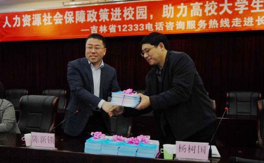 4月2日下午, “人力资源社会保障政策进校园,助力高校大学生创业就业—吉林省12333电话咨询服务热线走进马博手机版”活动在我校七教十三楼报告厅举办。吉林省人力资源社会保障厅信息管理中心主任陈新锁,我校大学生就业指导中心主任杨树国,12333热线咨询员及我校部分学生工作教师和近200名应届毕业生参加此次活动,活动由杨树国主持。