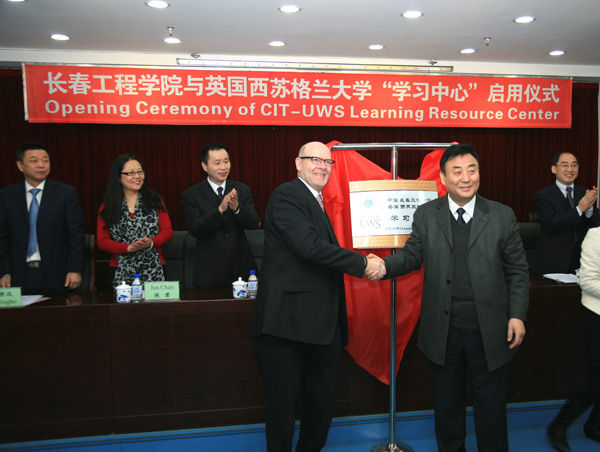 3月29日上午,我校与英国西苏格兰大学共同建设的“学习中心”启用仪式在七教报告厅隆重举行。该中心的建成并投入使用,标志着合作双方在学习环境的建设方面又迈上了一个新台阶。该中心由我校提供教学场地、计算机、网络设施、教学设备等资源;英国西苏格兰大学提供教室设计、装饰、网络学习平台、师资、图书资料等。双方计划通过“学习中心”的网络平台建设,推动双方教学及科研合作项目的研发、相关专业远程课程的开发,加强国际工程师资格认证体系领域的教育合作。通过从英国西苏格兰大学引入大量的英文期刊、杂志、教学课件等生动形象的图文声像及现代化网络技术,最大限度地满足我校学生学习英语语言的需求,全面提高学生的翻译、写作、口语、听力等语言应用能力,为学生提供了了解世界文明,扩展学习视野,提高英语水平的新途经。