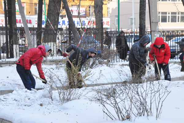 上午9点整,志愿者们来到抚松路社区的“望月阁尊老护理院”,为老人们献上了精彩的演出,用他们的热情给老人带来欢声笑语。志愿者们还参与了打扫卫生、帮老人择菜、门口积雪清理等工作。同日,志愿者们在自由大路社区进行了志愿扫雪活动,志愿者们不辞辛苦,为社区居民带去了便捷,在这白雪皑皑的冬季带给人们一丝温暖。