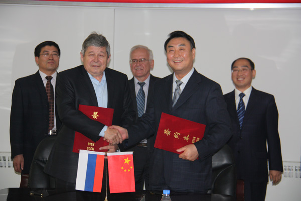 会谈后,韩立强院长和什皮廖夫校长代表双方学校签订了《教育领域合作协议》。根据协议书的相关内容,今后两校将在教师和学生交流、教科研合作等领域开展广泛合作。