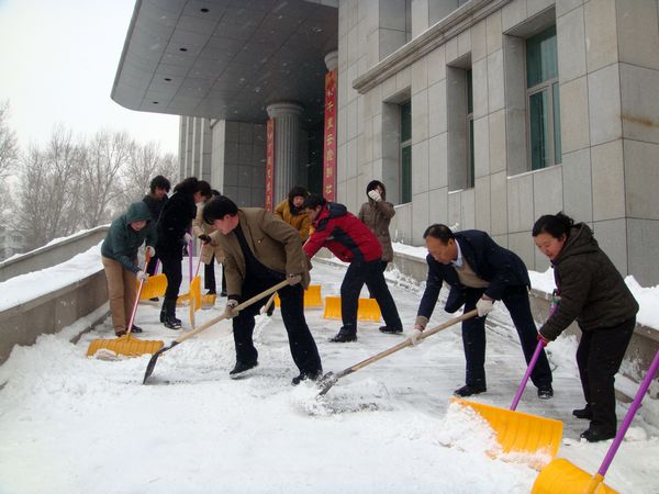 近日,长春连降大雪,校园的积雪给师生员工的出行带来不便,为给师生营造了安全畅通的出入环境,学校后勤总公司妇委会组织女职工冒雪对第七教学楼的外部台阶及两侧道路上的积雪进行了清扫,后勤总公司领导也加入到清雪队伍。女职工们表示,以实际行动学习雷锋精神,这是一次最有意义的“三八”妇女节活动。