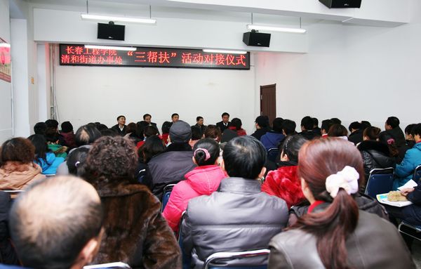 为确保“三帮扶”扎实、有效、持续的开展。元旦前夕,12月28日,学校党委书记李春生,组织部部长于晓光及组织部全体工作人员,电气与信息工程学院分党委书记赵慧及其一行十余人满载着全校师生对长春市清河街道困难群众的深情厚谊,送去了米、面、油等慰问品。并与清河街道办事处举行了 “三帮扶”工作对接仪式。