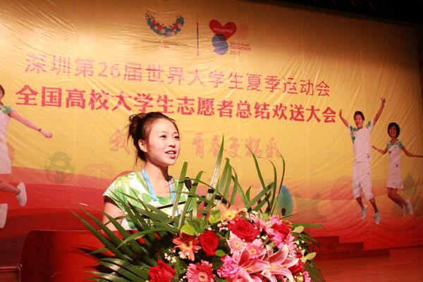 我校志愿者代表全国的志愿者发言