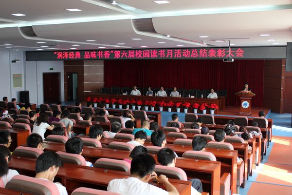 图书馆馆长张萍对第六届校园读书月系列活动进行总结。她说,校园读书月系列活动自2006年开展以来,已成功举办了六届。一直以来,读书月活动的开展都得到了学校领导的高度重视、各有关部门的大力支持和各学院的积极配合。本届读书月活动自4月20日新书展销会拉开序幕,到6月30日结束,历时两个多月,期间举办了中华经典诵读会、主题征文、好书推荐、电子资源讲座等系列活动,在学生中反响热烈,效果良好。读书月系列活动,进一步推动了大学生阅读活动的开展,让同学们与好书为友、与大师对话、与经典同行。今后,校园读书月系列活动还将继续深入开展下去,希望能有更多的同学参与到活动中来,并能充分利用我校图书馆优良的阅览和学习环境,勤奋学习,多读好书,不断提高自身素质和文化修养。同时也希望在图书馆教职工和全校师生的共同努力下,读书月活动越办越好,为校园文化建设和学风建设提供有力支撑。