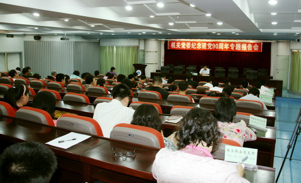 6月10日下午,机关党委在第七教学楼报告厅举行了庆祝建党90周年专题报告会,邀请学校党委书记李春生为机关副处级以上干部、全体党员、入党积极分子作了庆祝建党90周年专题报告。报告会由机关党委书记杨悦新主持。