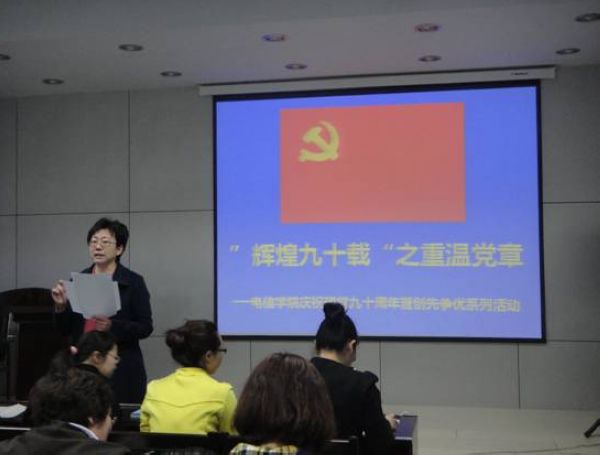 “有一页历史,她的灿烂照亮了漆黑的夜空。有一段岁月,她的辉煌在我们的心上镌刻。”为迎接建党九十周年,深入开展创先争优活动,电信学院分党委于4月20日下午举办了党员师生“辉煌九十载”之“重温党章”知识竞答活动。通过这次活动,电信学院广大党员师生重温了党的章程,回顾建党九十周年来取得的丰功伟绩,进一步坚定共产主义理想信念,加强党性修养,增强党员意识和党性观念;坚定了锐意进取,开拓创新,为实现学校的发展目标而奋斗努力的信念。
