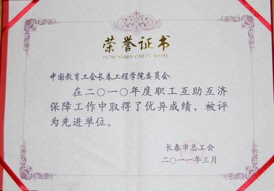 4月1日上午,长春市总工会召开2010年度职工互助互济保障工作总结表彰会。我校工会被评为“长春市职工互助保障工作先进单位”。