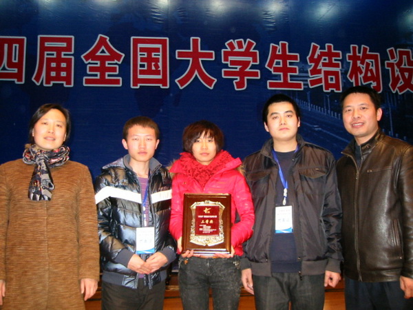 11月12-15日,由国家教育部、住房和城乡建设部、中国土木工程学会联合主办,由哈尔滨工业大学承办的第四届全国大学生结构设计竞赛在哈尔滨工业大学举行。参加本次赛会的有来自“985”院校和“211”等70所高校的71支参赛队伍。经过结构造型与体系、理论分析、现场模型制作、叙述答辩和加载五个环节的激烈争夺,最后我校由土木工程专业的学生张静、魏玉玺、张佳奇,组成的代表队(指导教师袁志仁、领队张曙光)获得了第27名的好成绩,荣获三等奖。