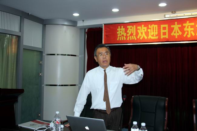 在我校成立十周年暨办学六十年之际,应我校的邀请,9月10日,日本东海大学教授久慈俊郎博士、日本东海大学泽井斌博士、日中口述历史文化研究会常务副会长李素桢博士、日中口述历史文化研究会理事星野孝一先生一行四人来我校访问。