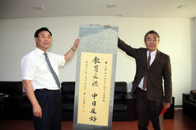 我校韩立强校长会见了久慈俊郎教授,向他颁发了聘书,聘请他为我校客座教授,。