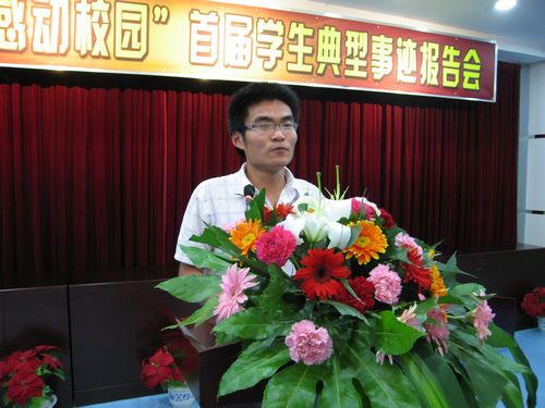 报告团成员由十佳大学生、优秀学生干部、自强标兵组成,王传庆、李龙标、王超、孙波、许谨、孙山、田丰元、孙鹏程八名同学以“相约校园,成长对话”为主题,分别从刻苦学习、志愿服务、学生干部工作的锻炼、社会实践体会、自强自立等方面介绍了自己进入大学以来的成长经历及对大学生活的感悟。他们朴实的语言,激情的演讲,深深地打动了在场的每一位同学,使大家感受到了榜样的力量,同学们从中收获的不仅仅是事迹的本身,更是勤奋努力、刻苦钻研、自强自立的精神。整场报告会精彩纷呈,场下不时传来阵阵掌声。