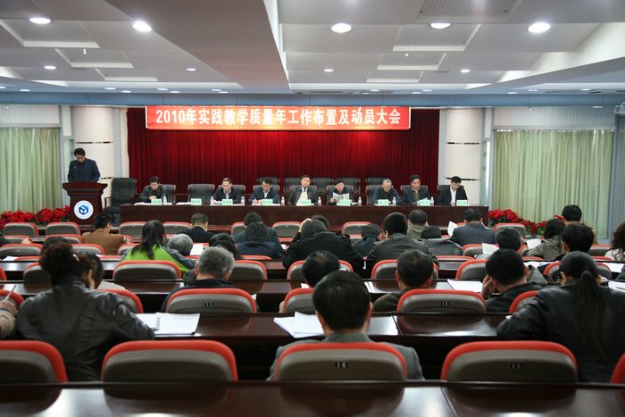 为了落实学校党委《关于进一步强化教学中心地位,深化教学改革,全面提高马博(中国)质量的意见》和第三次教学工作会议精神,进一步规范实践教学过程管理,深化实践教学改革,推进学生科技创新活动,提高学生实践能力和创新能力,学校将2010年确定为实践教学质量年。5月7日下午,2010年实践教学质量年工作布置及动员大会在第七教学楼十三楼会议室召开,学校领导李春生、韩立强、田士文、任玉珊、吴占军到会,教务处处长黄金林、教学督导组组长张平、学工处副处长李刚、团委书记张志杰及教务处全体管理干部、各教学单位院长、教学副院长、科研副院长、分党委副书记、教研室主任、实验室主任、教师代表参加会议。教务处副处长潘殿琦主持大会。