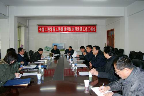 汇报会由党委书记李春生主持,院长韩立强、副院长田士文、纪委书记张未知到会,学校纪检办、审计处、财务处、基建处等部门负责人参加会议。汇报会上,李书记对省教育厅检查组到校检查指导工作表示欢迎,对我校逸夫图书馆的立项、建设等做了介绍。韩院长指出了图书馆建设的紧迫性和必要性,总结了工程建设的特点。田副院长代表学校做全面工作汇报,重点介绍了图书馆规划、立项、审批、招投标的过程,汇报了学校专项治理活动以来自查自纠、整改落实工作的开展情况。纪委张书记回顾了专项治理工作的各个工作环节,介绍了我校在专项治理自查阶段的方法、步骤等。