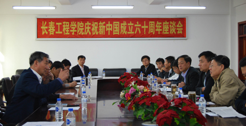 在举国上下欢庆新中国60年华诞之际,我校师生员工以丰富多彩的形式表达爱国之情。9月25日下午,学校组织召开“庆祝新中国成立60周年师生座谈会”,离退休老同志代表、民主党派负责人、教师代表、学生代表、部分机关干部欢聚一堂,追忆往昔革命岁月,颂赞新中国建设辉煌成就,共同表达了祝福祖国永远繁荣昌盛富强的美好心愿。