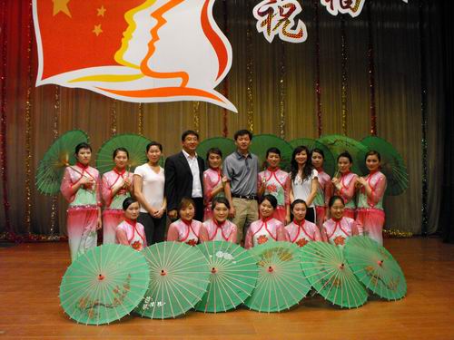 本次大赛贯穿纪念建国60周年“唱响红歌 祝福祖国”主题,在给同学们送上一档文化大餐的同时,也为青年学子上了一堂生动的爱国主义教育课。大赛在大学生艺术团带来的舞蹈《走雨》中落下帷幕。演出结束后,大赛评委和团委老师与演员合影留念。