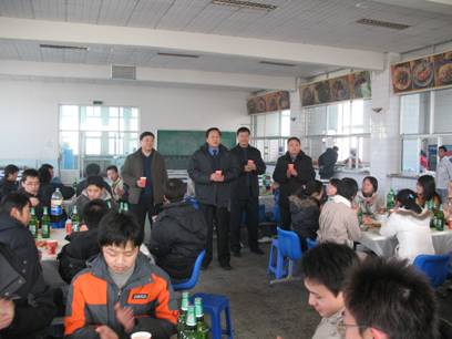 2月6日是传统的农历大年除夕,下午14时,学生饮食中心门前鞭炮齐鸣,响声震天,留校学生春节联欢会在东西两个校区同时举行。丰盛佳肴摆满餐桌,160多名留校学生欢聚一堂,笑容满面,共庆新春佳节。校党委副书记吴占军、校团委书记马凯、学生工作处副处长李金明、就业指导中心主任杨树国、勘测学院副书记李庆飞和校团委组织部长于淼来到学生中间,与留校学生同吃年饭,共度春节。吴书记发表了热情洋溢的新春贺词,向全体留校同学送去新春祝福,祝愿同学们在新的一年里身体健康、学习进步。此前学生工作处还为留校学生发送了水果、花生、瓜子和年夜水饺票,学校饮食中心为学生准备了年夜水饺。学校领导的亲切关怀使这些身处异地的学子感受到家一样的温暖。