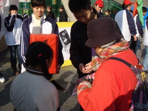 “倡议爱心捐助,构建和谐社会”,11日上午,土木学院分团委、学生会组织“义务卖报纸捐助贫困大学生”活动。土木学院全体大一新生,身着校服走上街头募集爱心,形成红旗街上一道亮丽的风景线。