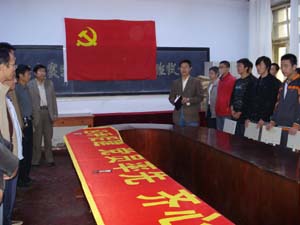 最后,全体党员在题为“迎评促建 党员率先 齐心协力 扎实苦干”的条幅上签下了自己的名字,接受大家的监督。