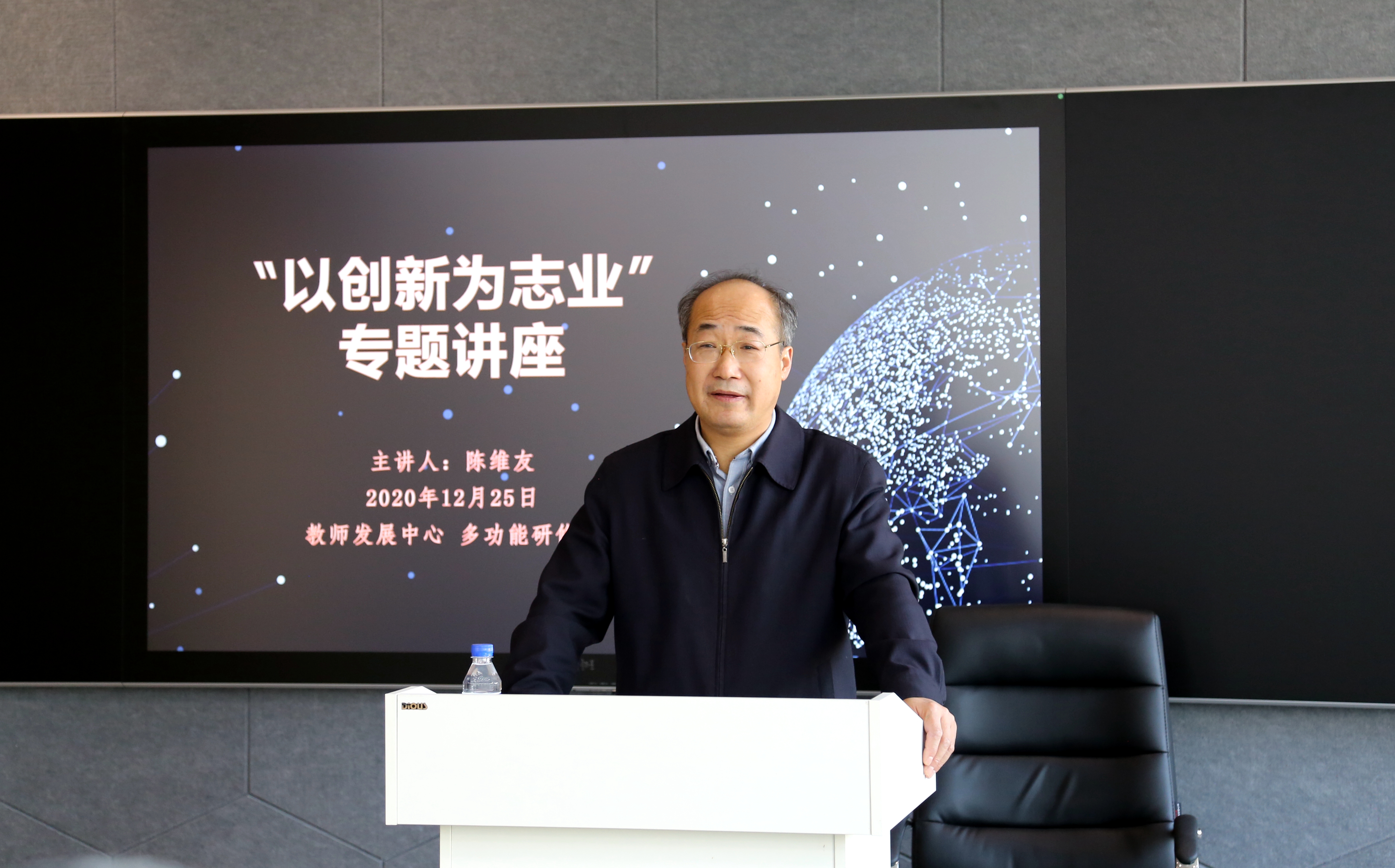 12月25日,吉林省科学技术厅副厅长陈维友受邀来我校作题为“以创新为志业”的专题讲座。讲座由学校党委副书记张冀男主持。
