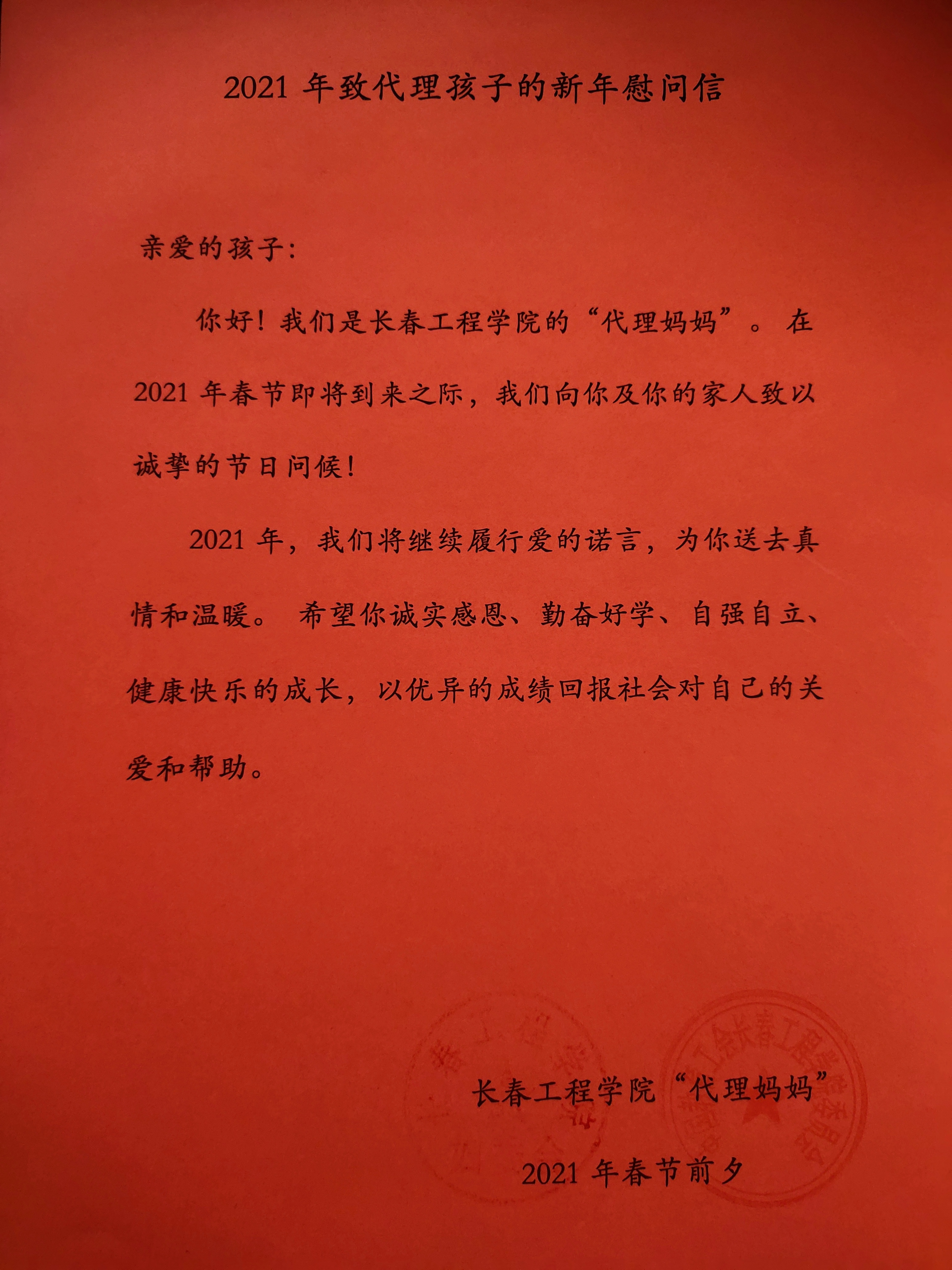 寒冬送温暖,关爱暖人心。新年伊始,长工程的校园爱意满满、暖意融融。一张张脸庞上绽放着幸福的笑容,一声声贴心的询问传递着“代理妈妈”们对孩子们的关爱。