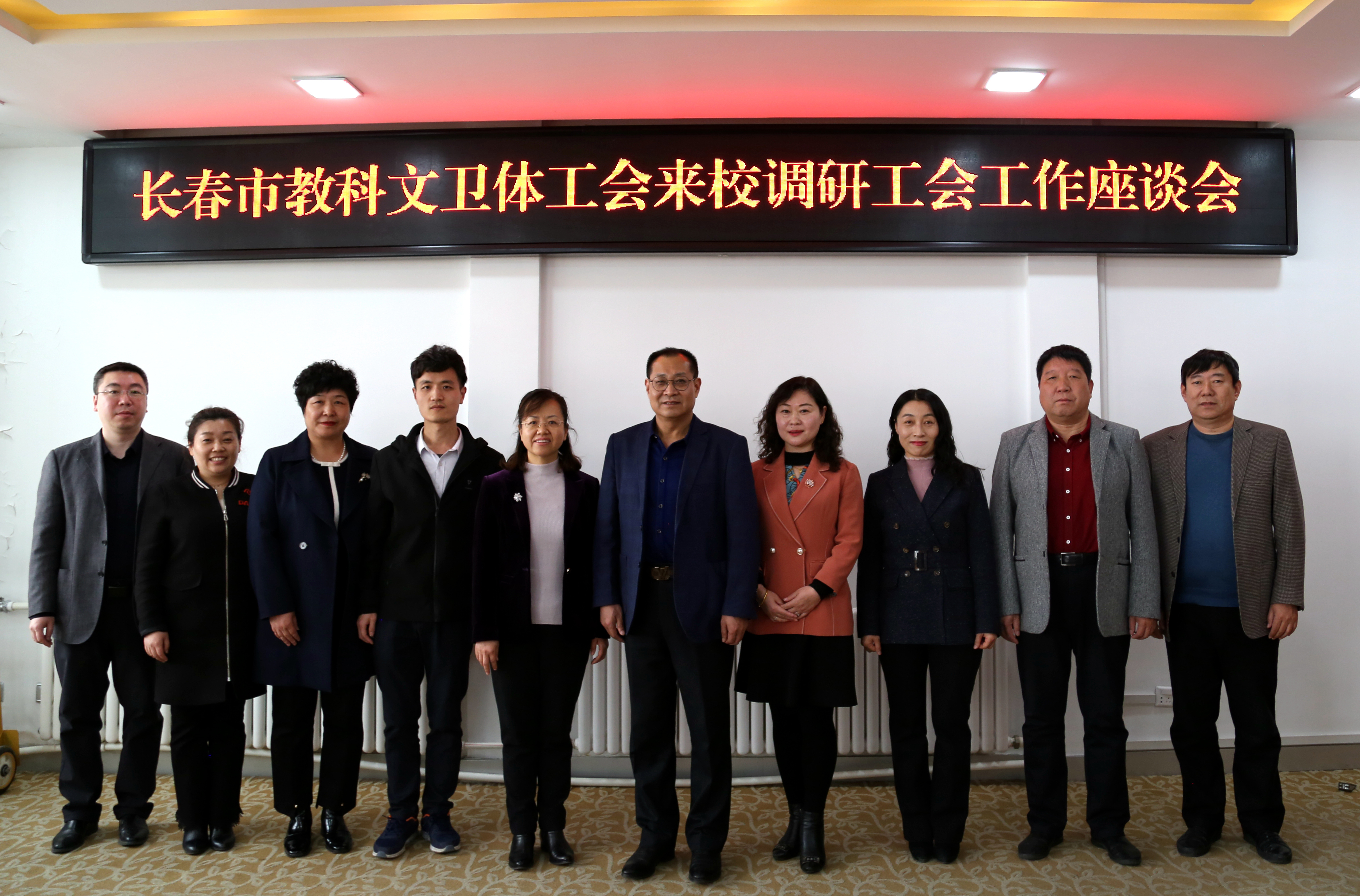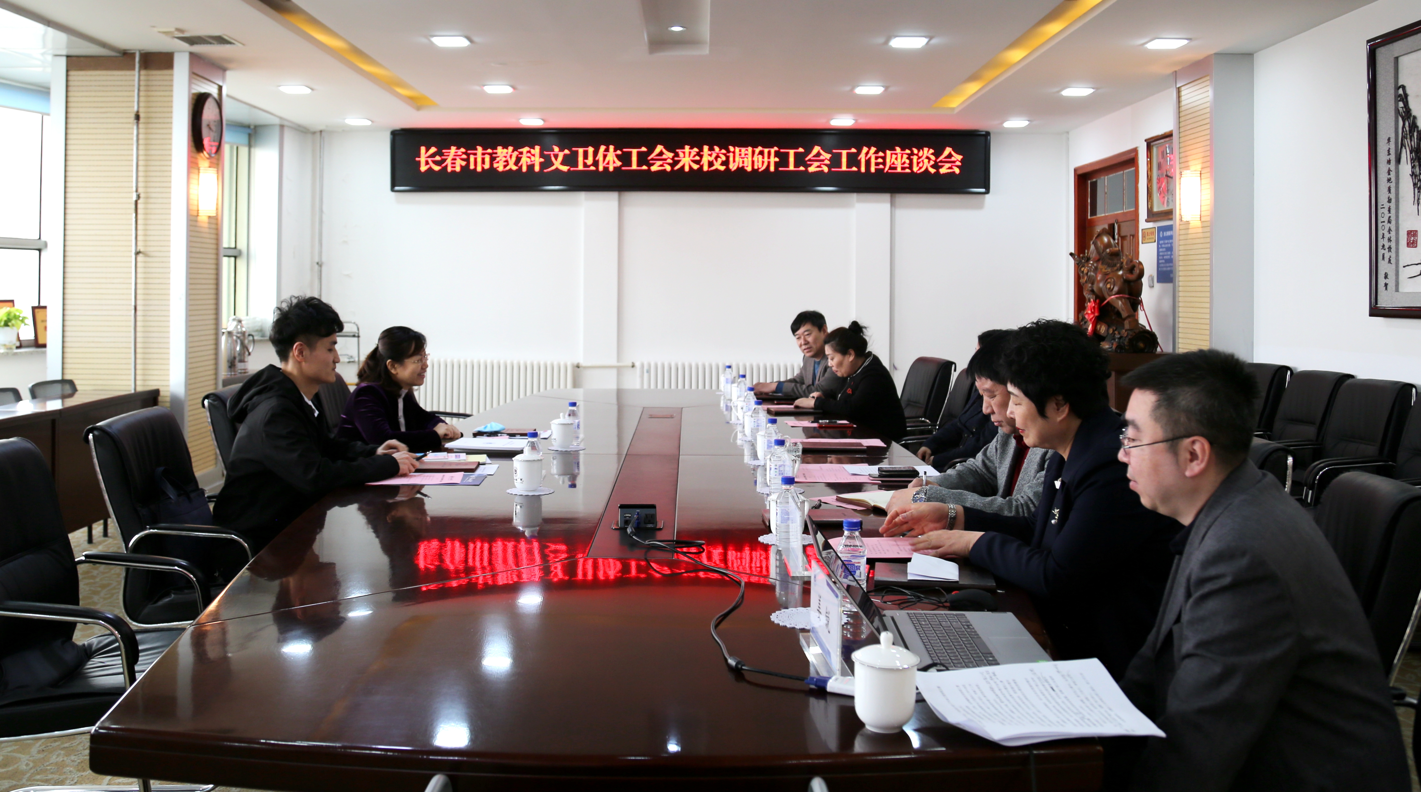 4月15日下午,长春市教科文卫体工会主席赵娜一行来我校调研座谈。学校党委副书记温义生,校工会、基层分工会、教工协会负责人及省、市师德标兵代表参加座谈。