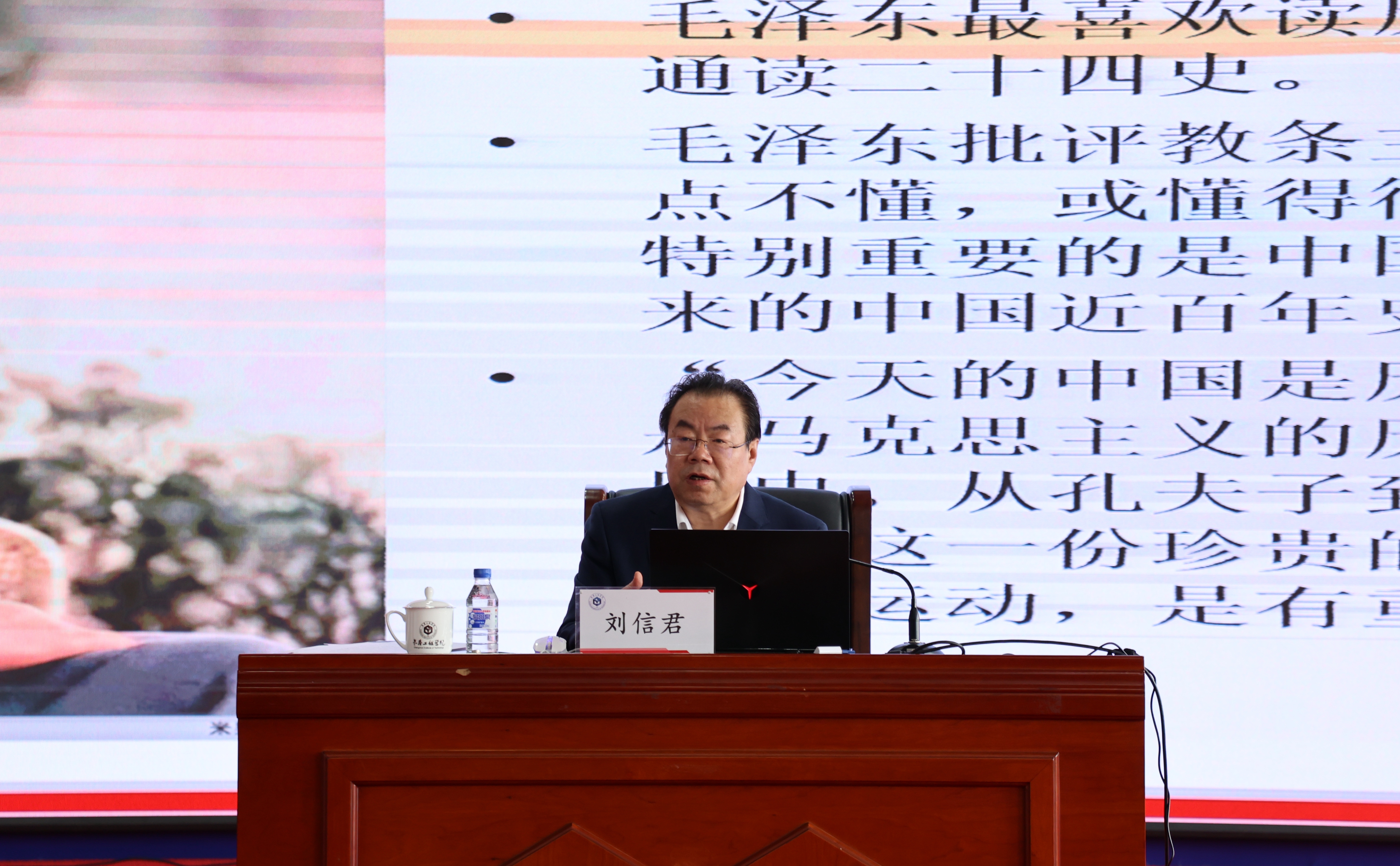 刘信君教授在会上以《理想信念坚定如磐,百年奋斗铸就辉煌》为题做学习报告。刘信君围绕学习领会习近平总书记在党史学习教育动员会上的重要讲话精神,深刻阐释了在全党开展党史学习教育的重大意义,系统回顾了百年来中国共产党团结带领人民走过的光辉历程、取得的辉煌成就,全面介绍了开展党史学习教育的主要内容和重点任务。