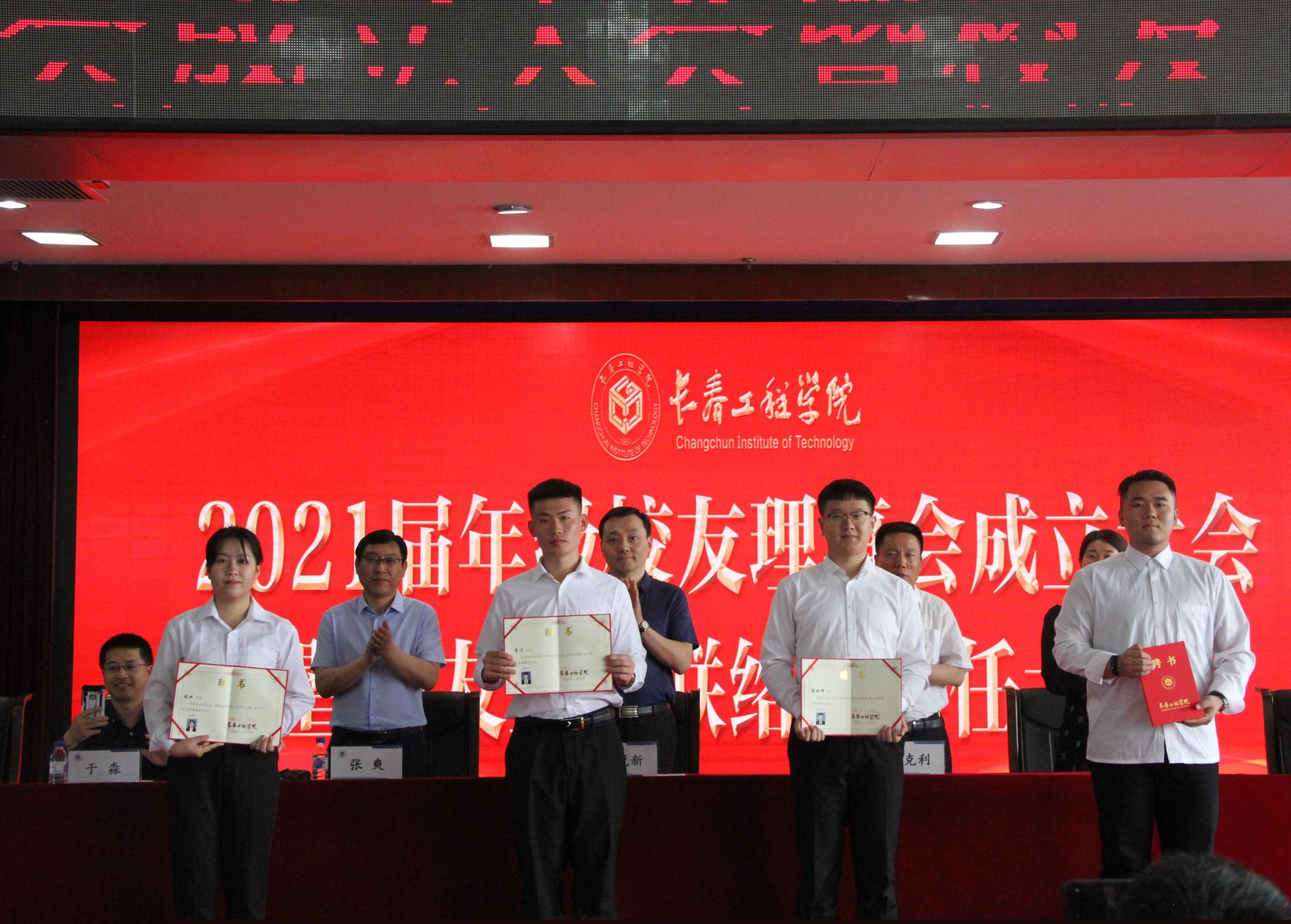 杨悦新副校长首先介绍了学校校友工作的有关情况,并对2021届年级校友理事会的成立和受聘的校友工作联络员表示祝贺。他指出,多年来,长工程的每一步发展都离不开全体师生员工的共同努力,更离不开广大校友长期以来的关心与支持。他希望年级校友理事和校友工作联络员继续心系母校,支持母校的发展;希望他们扎实履职尽责,积极配合母校校友总会和地方校友会的工作,充分发挥好母校和校友之间的桥梁和纽带作用;希望他们立大志、明大德、成大才、担大任,以社会主义建设者和接班人的使命担当,在全面建设社会主义现代化国家新征程上奋勇争先,为实现中华民族伟大复兴贡献青年一代的智慧和力量。