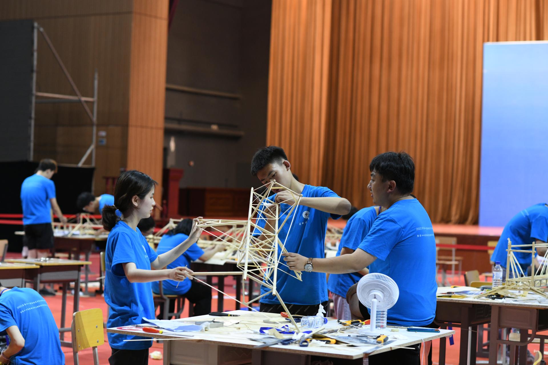 本届大赛赛题为变参数桥梁结构模型设计与制作,要求参赛队员在现场利用竹材,在14小时内完成模型的设计与制作。大赛吸引了来自全省13所高校共26支代表队参赛,规模和数量创历史新高。