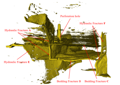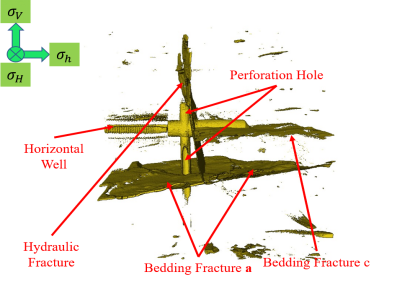 本文研究针对我国油页岩层理结构发育的特点,提出以定向射孔压裂的方式对储层进行改造,结合真三轴水力压裂系统与CT扫描技术对不同的射孔参数和压裂液参数对水力裂缝扩展行为的影响机制展开研究。基于对CT扫描结果进行后处理,在不损坏实验样品的前提下实现对模型内部缝网结构的准确反演,有效降低了裂缝形态观察过程中对实验样品完整性和实验结果准确性的影响。