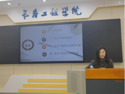 随后“翻译传播与国家治理话语体系建构研究创新团队”的毛潇潇老师和“英语语言服务研究创新团队”的董一潼分别进行了题为“国际传播与外语人话传播”和“数字经济时代的语言产业发展”的汇报发言。两位老师分别就传播与传播学、传播中的言语交际功能、国际传播中外语人何为以及语言产业发展概况、语言产业经济的主要研究议题、语言产业经济与跨境电商发展等相关方面,结合学院科研团队的研究主题进行了详细阐述。