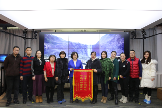 2019年1月4日上午,安图县科学技术局劳雪芬局长专程将一面写有“校企合作突瓶颈 科技创新结硕果”的锦旗送到我校“长白山历史文化与VR技术重构”吉林省重点实验室,孟祥萍副校长、党委宣传部张迎娟副部长及科学研究处相关人员、实验室核心成员出席了赠旗仪式。