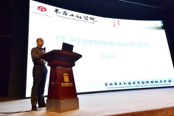 大会主要内容有超低温空气源热泵、中深层地热能、燃气式煤粉炉设计、生物质燃料的应用等多方面供热新技术。会议邀请到了北京地质矿产调查局李宁波副总工程师、中国煤科研究院周建明总工以及吉林大学王振坤教授等多名专家学者。我校金洪文教授和吕耀军高级工程师在大会上分别作《超低温空气源热泵在吉林省的应用》和《PE-RTII型耐热聚乙烯管供热应用研究》的报告。
