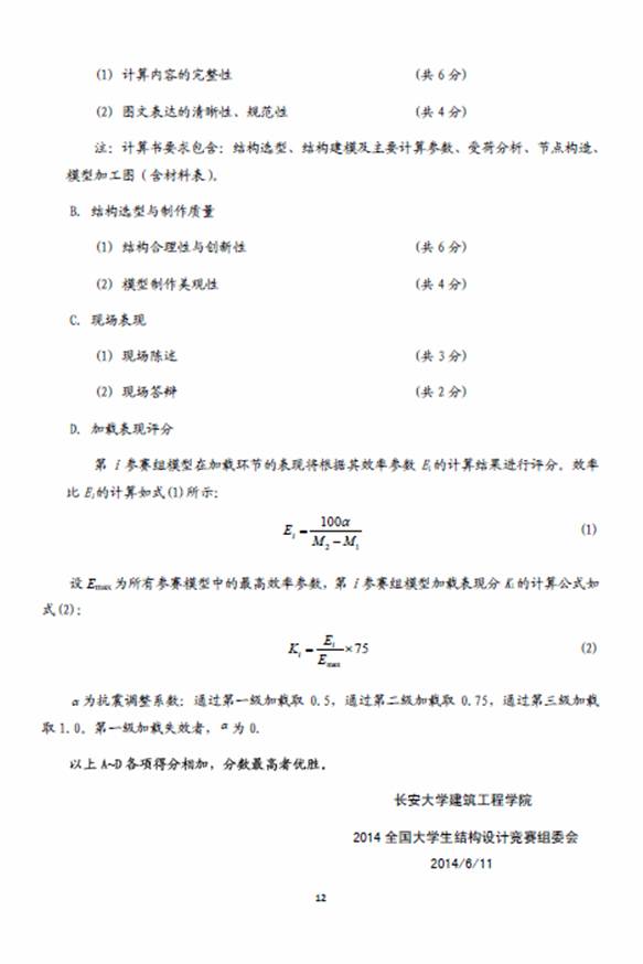 竞赛题目:采用第八届全国大学生结构设计竞赛赛题。