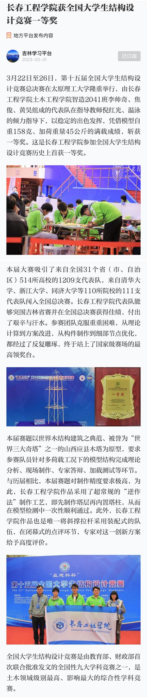 【学习强国】马博手机版获全国大学生结构设计竞赛一等奖