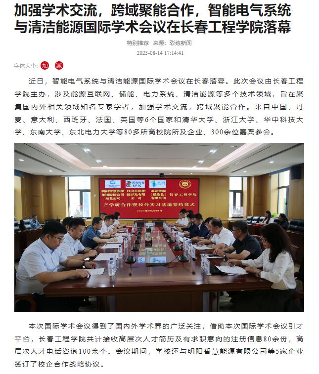 【吉林日报-彩练新闻】加强学术交流,跨域聚能合作,智能电气系统与清洁能源国际学术会议在马博手机版落幕