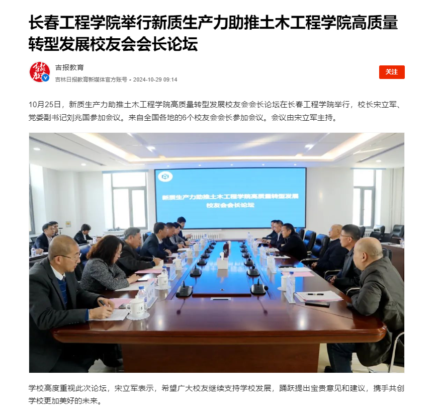 人民日报等多家媒体报道我校举行新质生产力助推土木工程学院高质量转型发展校友会会长论坛