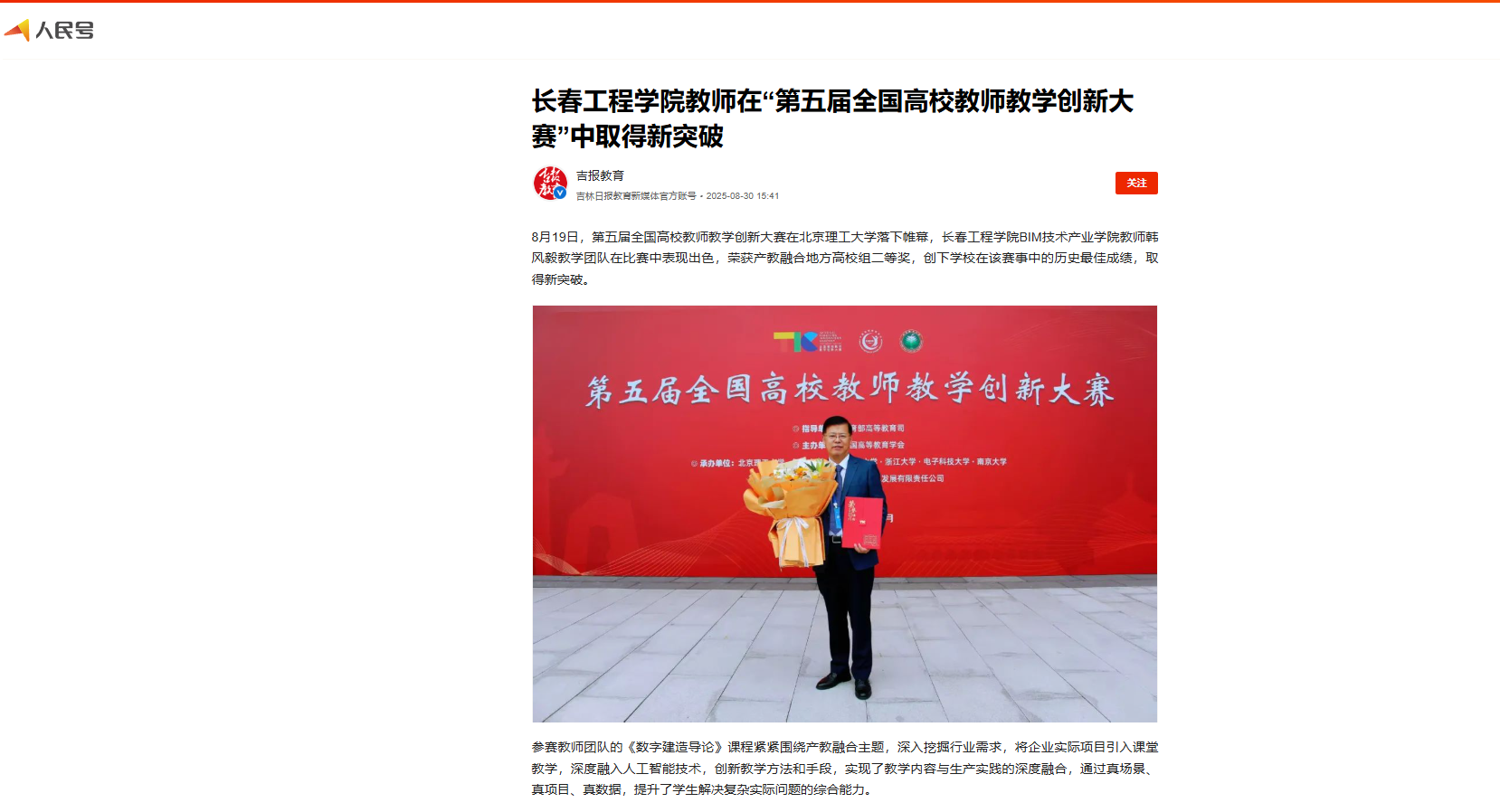 人民日报等多家媒体报道我校教师在“第五届全国高校教师教学创新大赛”中取得新突破