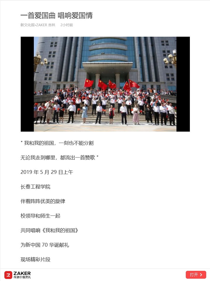 【新文化报•ZAKER 吉林】一首爱国曲 唱响爱国情