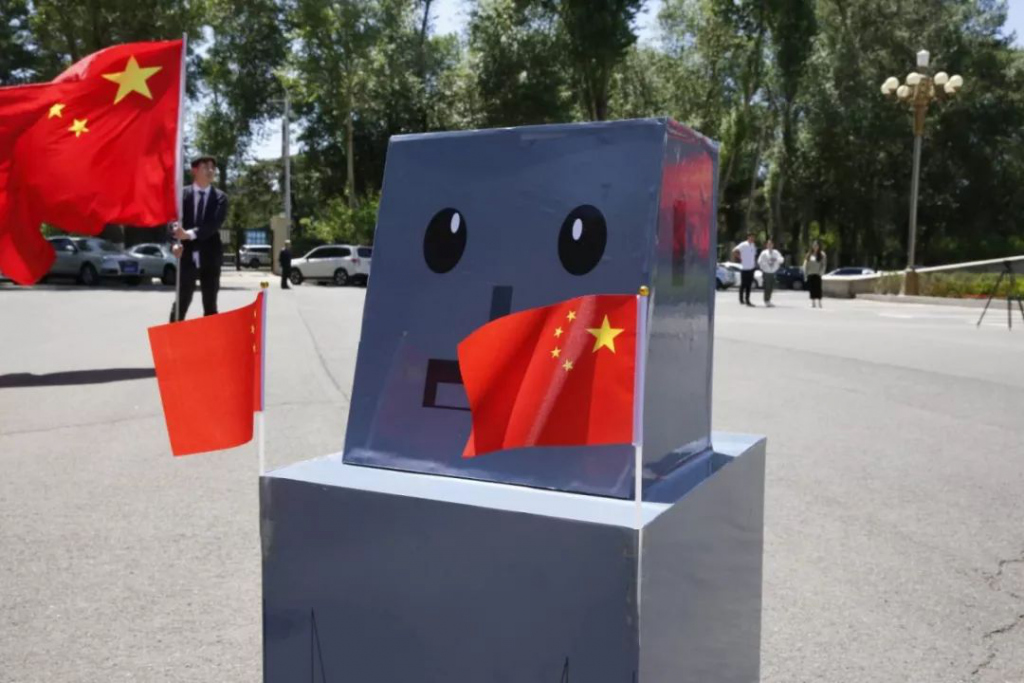 本次快闪活动中,还有一个 " 特殊演员 " ——这个开场就出现在师生面前,外表呆萌可爱的移动机器人,计算机技术与工程学院 CcitRobot 实验室自主设计,曾获得 2018 年第二届全国竞技机器人邀请赛创新设计一等奖。