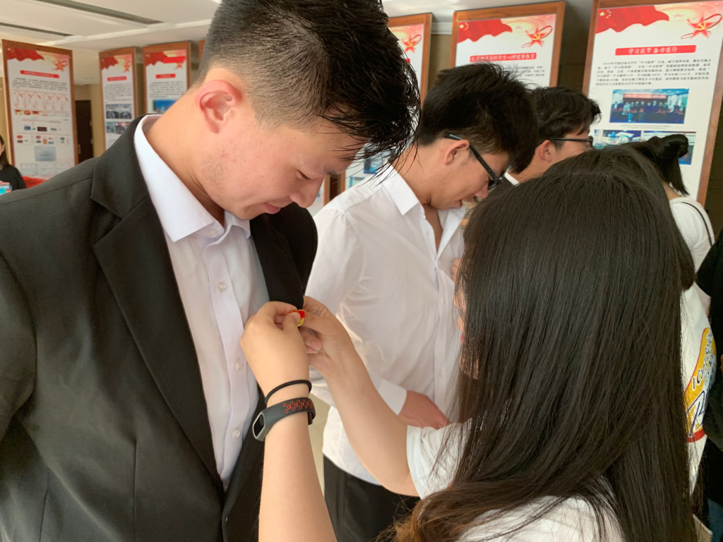 为了将党员本色薪火相传,随后举行了佩戴党徽仪式,由毕业生党员为新发展的党员佩戴了党徽,新党员将以毕业生党员为榜样,将计算机学院优良传统不断传承下去,为学院的党建工作贡献出自己的力量。学院党委书记卢航最后寄语所有党员,要继续发挥党员作用,坚持对 " 不忘初心,牢记使命 " 主题教育的学习,未来工作中要严格做到廉洁自律,遵章守纪。