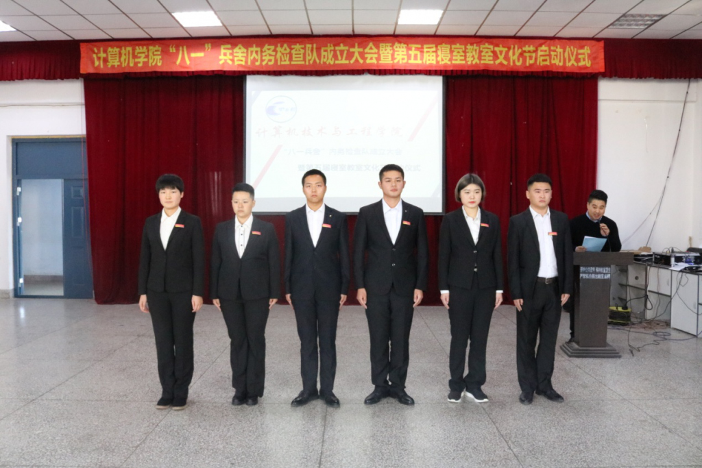 曾服役于 79 军工程防化第 79 旅,雷锋同志生前所在部队的李翔同学,联合另外 5 名同学自发组织起来,组建成立了计算机学院的第一届 " 八一兵舍 " 内务检查队,他们坚持每周四早上 7 点进行宿舍大检查,其他时间进行抽查,每次遇到被褥折叠不整齐的同学,他们总是耐心指导,亲自动手示范,直到同学们学会为止,在这种氛围的带动下,同学们也都积极地开始学习内务整理,营造更好的住宿环境。他们主动奉献的工作热情、认真负责的工作态度和公正严明的工作纪律深受同学们的尊重和信服。