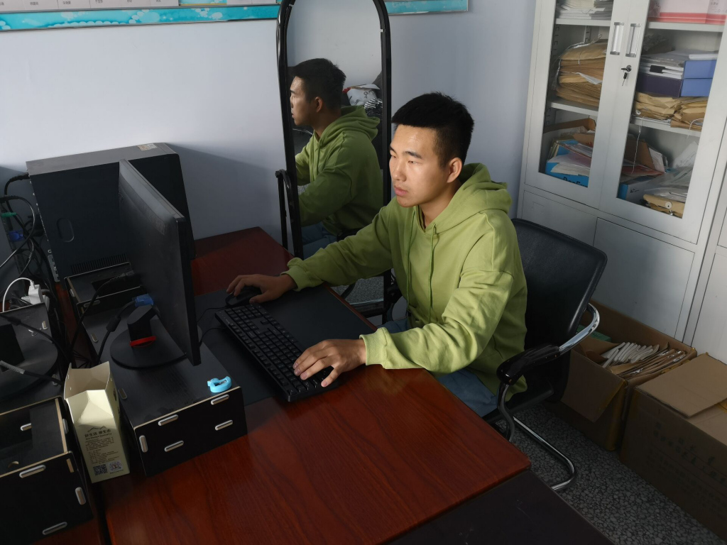 他叫张万坤,来自数媒 1831 班,曾担任武警辽宁总队机动支队的文书,回校后他主动找到学院领导和辅导员,表示愿意在办公室帮助老师做文字辅助的工作,要将自己的经验转化为工作成绩。目前,由他起草整理的文件已达到 10 余份,大大的缓解了辅导员工作的压力。张万坤曾这样说到:" 部队是一个大熔炉,可以让自己变得更出众,也可以让自己变得更坚强,不管自己什么位置,仰望星空,脚踏实地,好好努力!"
