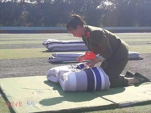 在主持人的一声令下,50双被子在运动场上依次铺开。“叠军被记住‘六字’口诀,‘压、量、切、塞、抠、修’,即被子压平,用手卡量,立掌切印,里外塞实,沿边抠角,观察整修。”在“八一兵舍”内务检查队队员的亲自指导下,一个方方正正,有棱有角的“豆腐块”展现在青年学生的面前,同学们啧啧称赞。